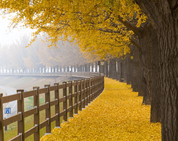 아산 곡교천 은행나무길은 가을이 되면 황금빛으로 물들어 절정을 이루는 산책 명소인데요. 10월 중순이 지나면 약 2km에 달하는 은행나무 가로수길 전체가 노랗게 변하며, 눈앞에 펼쳐지는 황금 터널은 보는 이로 하여금 감탄을 자아내게 합니다. 바닥에 떨어진 은행잎마저도 마치 융단처럼 펼쳐져 있어, 걷는 내내 마법 같은 분위기를 느낄 수 있는데요.